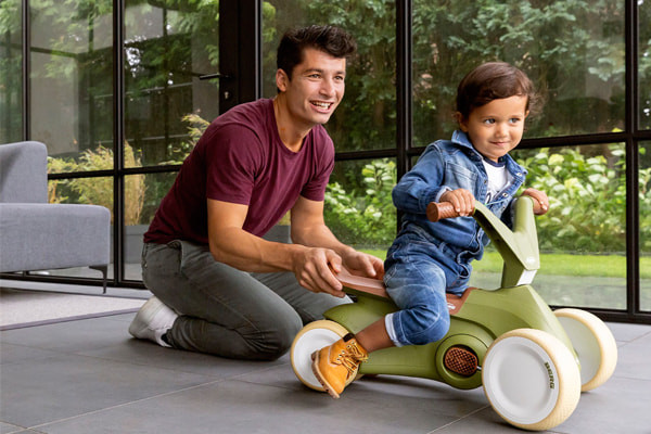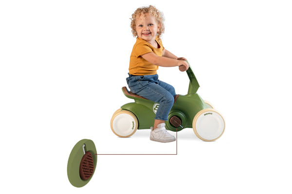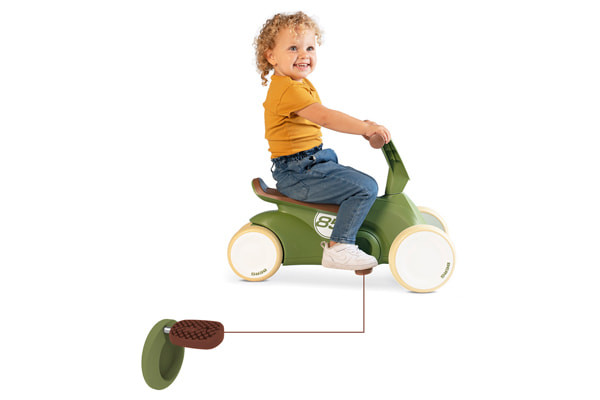 De BERG GO² in een retro groene uitvoering! Dit voertuig is een 2in1 model: zowel een skelter als loopauto. Hoe? Dankzij het geïntegreerde pedalensysteem. Klap ze in en je kind leert stappen zoals op een loopauto. Klap ze uit voor de volgende fase: leren trappen zoals op een skelter. De GO² is geschikt voor kinderen van 10 tot 30 maanden of met een lichaamslengte van 70 tot 100 cm. Voorzien van fluisterstille wielen en een speciaal zadel.