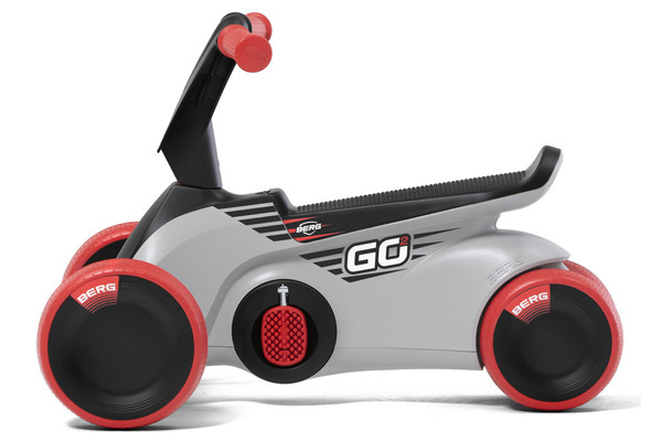 De BERG GO² in de uitvoering Sparx rood. Deze skelter en loopauto ineen is voor kinderen van 10 tot 30 maanden of met een lichaamslengte van 70 tot 100 cm. Dit ideale 2in1 model kan met de trappers in- en uitgeklapt gebruikt worden. Ingeklapt is ideaal voor het leren steppen met beide beentjes. Uitgeklapt is perfect voor de volgende fase: leren trappen. Het langwerpige zadel met structuur groeit automatisch mee. Stabiel door de vier fluisterstille wielen.