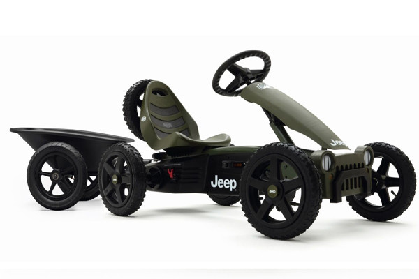 De BERG skelter Jeep Adventure met verstelbaar stuur en stoel. De Jeep Adventure is super wendbaar waarmee je heerlijk door de bochten kunt scheuren. De BERG skelter Jeep Adventure is voorzien van stoere velgen en een sportstuur. Ook wordt de bijpassende aanhanger meegeleverd in dit pakket! Voor kinderen van 4 tot 12 jaar of met een lichaamslengte van 110 tot 150 cm.