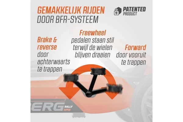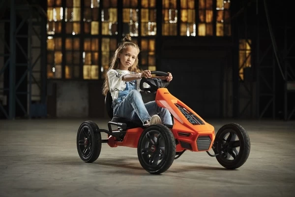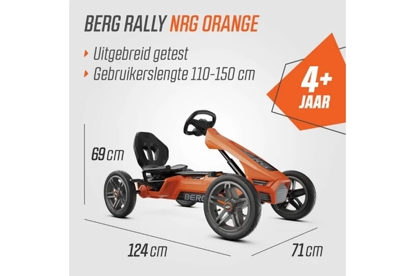 Een stoere oranje skelter die voorzien is van alle gemakken! Comfortabele luchtbanden, een BFR-systeem, een schommelas en een verstelbare stoel en stuur. Hierdoor kan de skelter jarenlang mee groeien met kinderen vanaf 4 tot wel 12 jaar (of met een lichaamslengte tussen de 110-150 cm). Met de parkeerrem weet je zeker dat je veilig stil staat.
